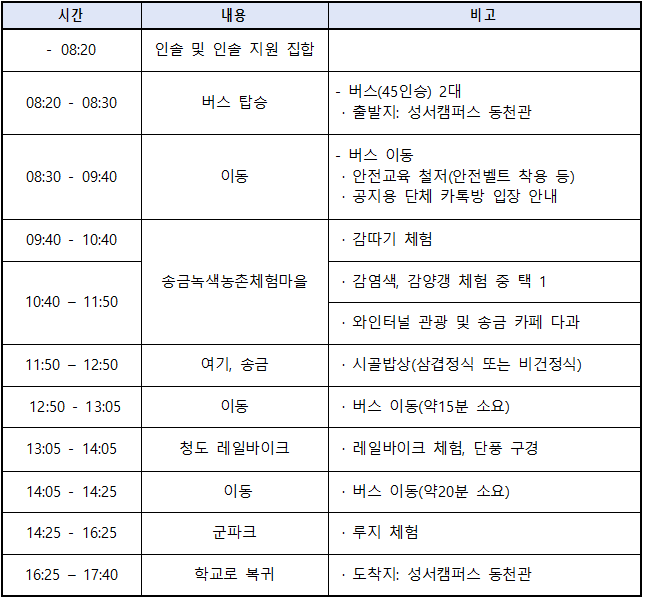 가. 일시: 2025. 11. 3.(월) 08:20 ~ 17:40, 동천관 출발
