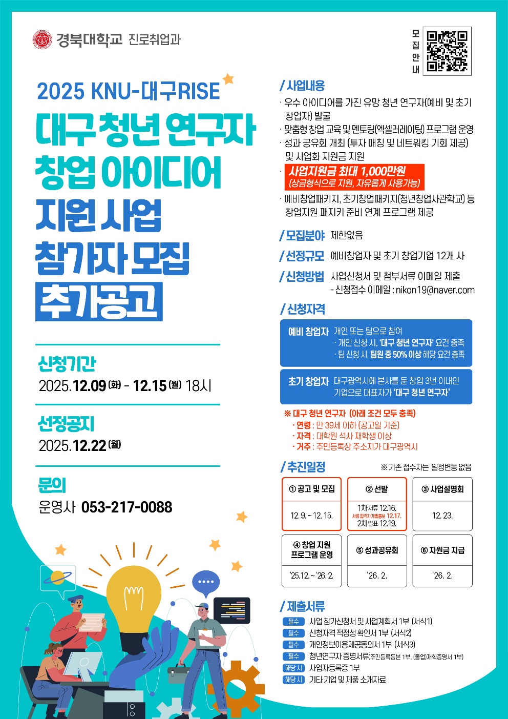 01_2025 KNU-대구RISE 청년 아이디어 지원사업 참가기업 추가 모집 공고문.hwp