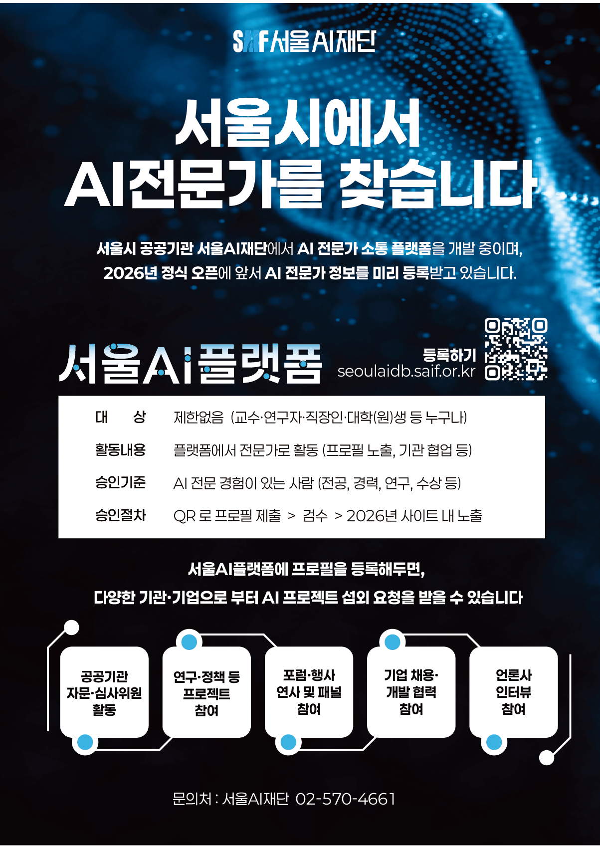 [서울AI재단] 서울AI플랫폼 'AI 전문가' 등록 요청